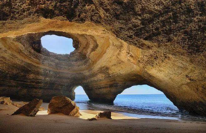 ①风蚀石窝:陡峭的迎风岩壁上风蚀形成的圆形或不规则椭圆形的小洞穴和凹坑。大的石窝称为风蚀壁龛。